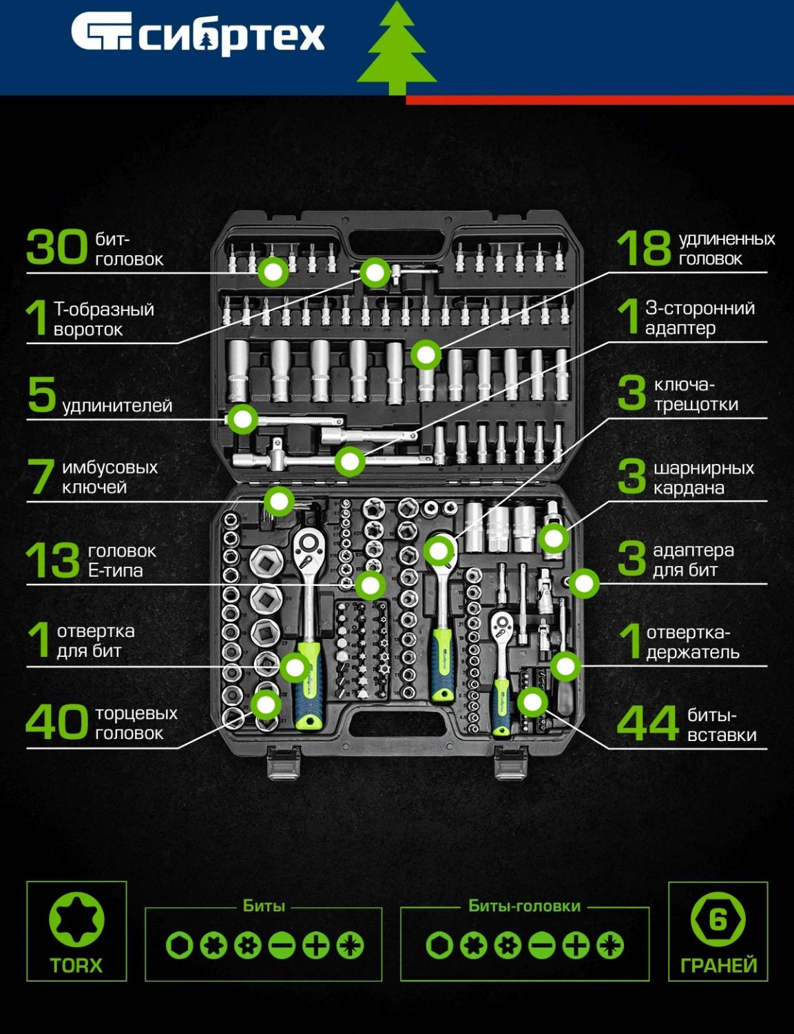 Набор инструментов Сибртех 14171 172 предмета (жесткий кейс) / 4dealer.ru