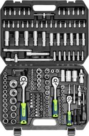 Описание Предназначенных для монтажа и демонтажа резьбового крепежа с разными типами шлицев. В комплект поставки входят карданы, удлинители и переходники, облегчающие работу в труднодоступных местах. Набор используется для ремонта автомобилей, а также будет полезен в быту.