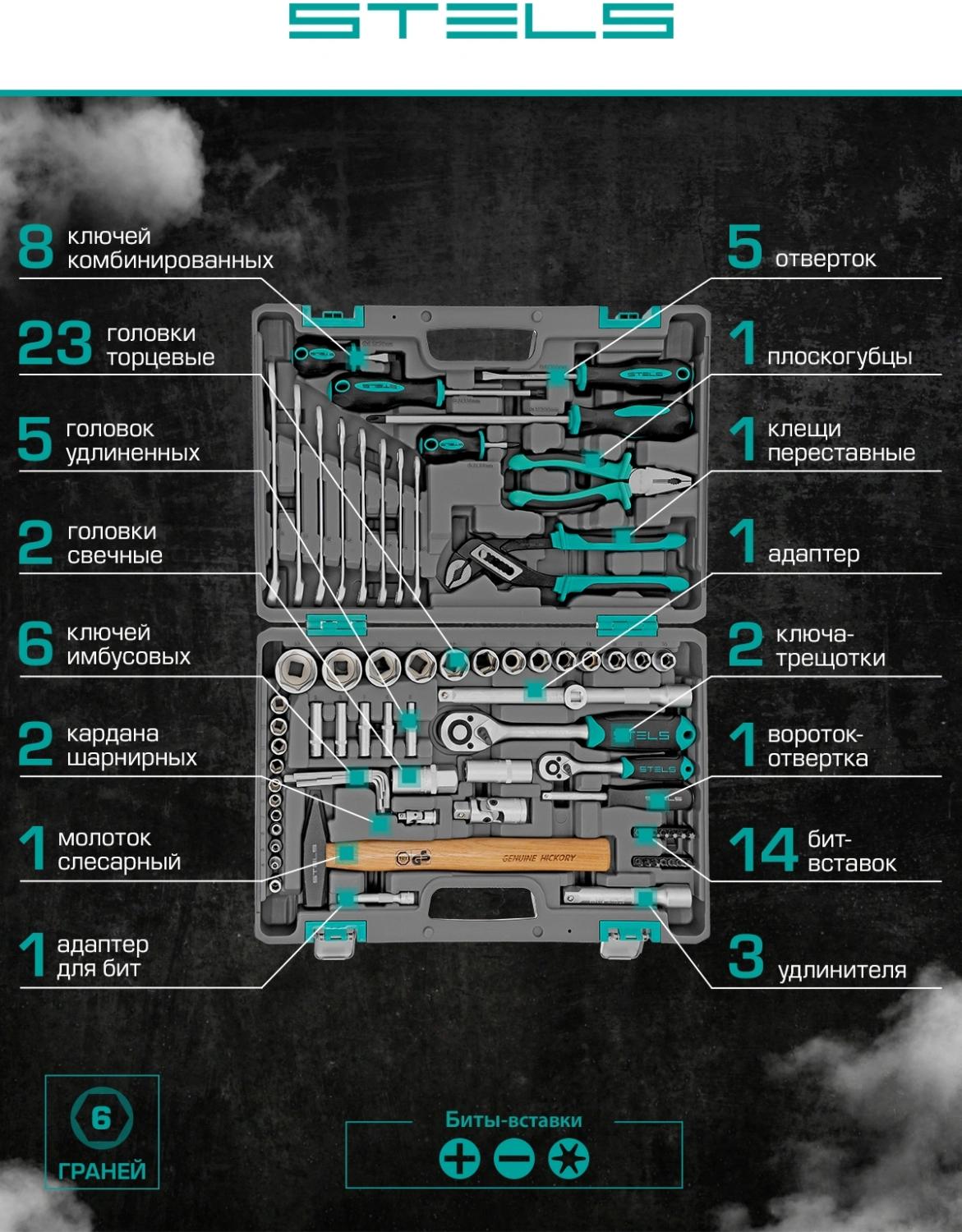 | Комплектация | жесткий кейс, набор бит, набор гаечных ключей, набор головок, набор отверток, набор торцевых ключей, набор шестигранных ключей |
