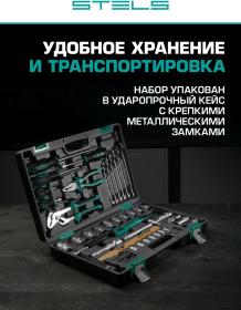 | Комплектация | жесткий кейс, набор бит, набор гаечных ключей, набор головок, набор отверток, набор торцевых ключей |