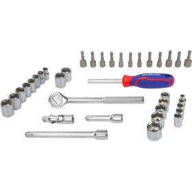Набор инструментов универсальный Workpro 47 предметов (WP202523) предоставляет отличный выбор ручных инструментов для профессионального авторемонта. Высокое качество и надежность инструментов из хром-ванадиевой стали гарантируют их износостойкость и долгий срок службы. Состав набора инструментов:- 10 шт. торцевые головки 3/8", 6-гранные: 9, 10, 11, 12, 13, 14, 15, 16, 17, 18 мм- 10 шт. торцевые головки 3/8", 6-гранные: 1/4", 5/16", 3/8", 7/16", 1/2", 9/16", 5/8", 11/16", 3/4", 13/16"- по 1 шт.: трещотка 3/8" 45T(зубьев), универсальный шарнир 3/8", удлинитель 3/8" 75 мм, удлинитель 3/8" 150 мм, магнитный битодержатель- 12 шт. магнитные головки- 10 шт. биты с держателемВнешний вид и/или характеристики товара могут быть изменены производителем в соответствии с производственным процессом.