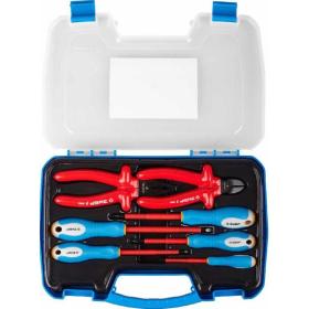 Набор диэлектрического губцевого инструмента Зубр Профессионал 2214-H7_z01 - комплект электроизоляционного монтажно-демонтажного инструмента для проведения работ под напряжением до 1000 Вольт. В наборе представлены отвертки для возможности выполнения крепежных операций, бокорезы для перекусывания проволоки и пассатижи для захвата, удержания и гибки деталей. Внешний вид и/или характеристики товара могут быть изменены производителем в соответствии с производственным процессом.