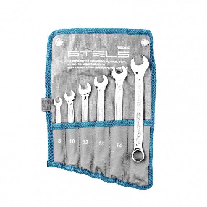 Описание Набор Stels 15282 включает 6 комбинированных ключей из стали CrV, размером от 8 до 17 мм, антислип, которые позволяют откручивать и закручивать резьбовые соединения. Они универсальны в применении, т.к. имеют кольцевую и рожковую головки.