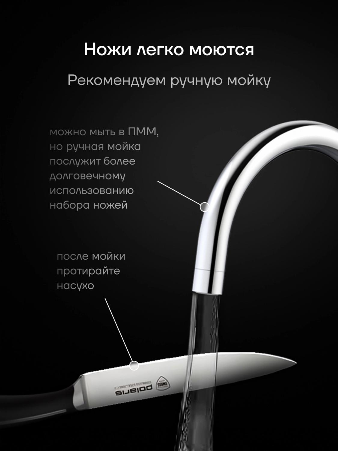 | Описание | Набор ножей Polaris Stein -3SS – это выбор для истинного повара и любителя кулинарии. В нем вы найдете все необходимые ножи для различных задач на кухне. Благодаря наличию всех этих ножей, вы сможете легко и быстро приготовить любое блюдо. |