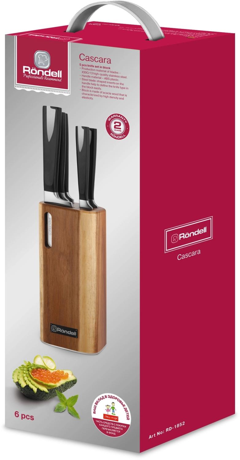 Набор ножей кухон. Rondell Cascara RD-1852 компл.:6предм. с подставкой черный подар.коробка / 4dealer.ru