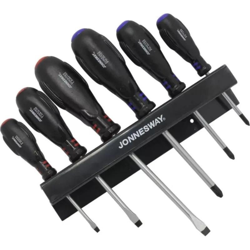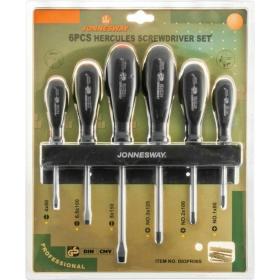 Набор отвёрток Jonnesway HERCULES (8 штук, D03PR06S) изготовлен в соответствии с требованиями стандарта DIN 5262, отвечают техническим условиям ГОСТ 17199-88. Изготовленные из хромомолибденованадиевой стали стержни с магнитной рабочей частью и ТПР рукоятка с протектором делают эти инструменты популярными на протяжении многих лет их выпуска.<br><br>Комплектация:<br> — Отвёртка SL 4×80 — 1шт;<br> — Отвёртка SL 6.5×100 — 1шт;<br> — Отвёртка SL 8×150 — 1шт;<br> — Отвёртка PH 1×80 — 1шт;<br> — Отвёртка PH 2×100 — 1шт;<br> — Отвёртка PH 3×125 — 1шт;<br>— Упаковка — блистер.</p> <br><br><!--noindex-->Внешний вид и/или характеристики товара могут быть изменены производителем в соответствии с производственным процессом.<!--/noindex-->