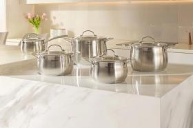 | Описание | Кастрюли Admiring из высококачественной нерж. стали имеют тройное вштампованное, а затем вплавленное дно, что обеспечивает равномерное прогревание и идеальное приготовление блюд. Комфортной работе способствуют высокие стенки с отметками литража внутри, а также стальные ручки эргономичной формы. |