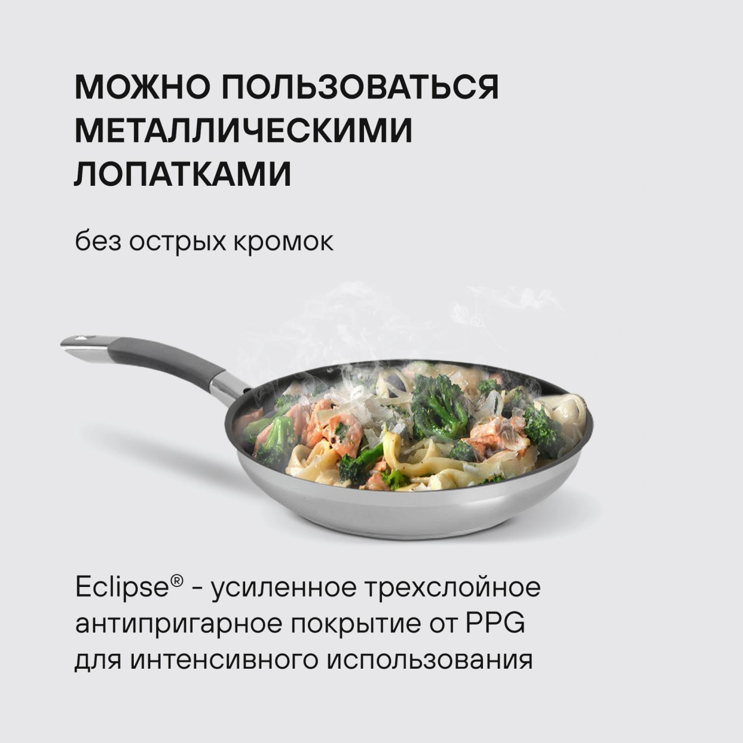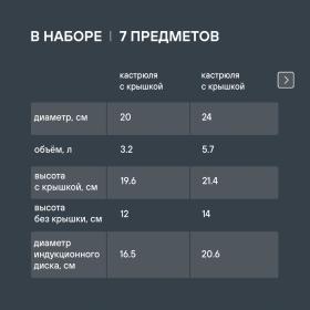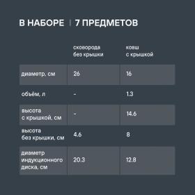 Состав комплекта Ковш с/кр 16 см, кастрюли с/кр 20 и 24 см, сковорода б/кр 26 см Flamme