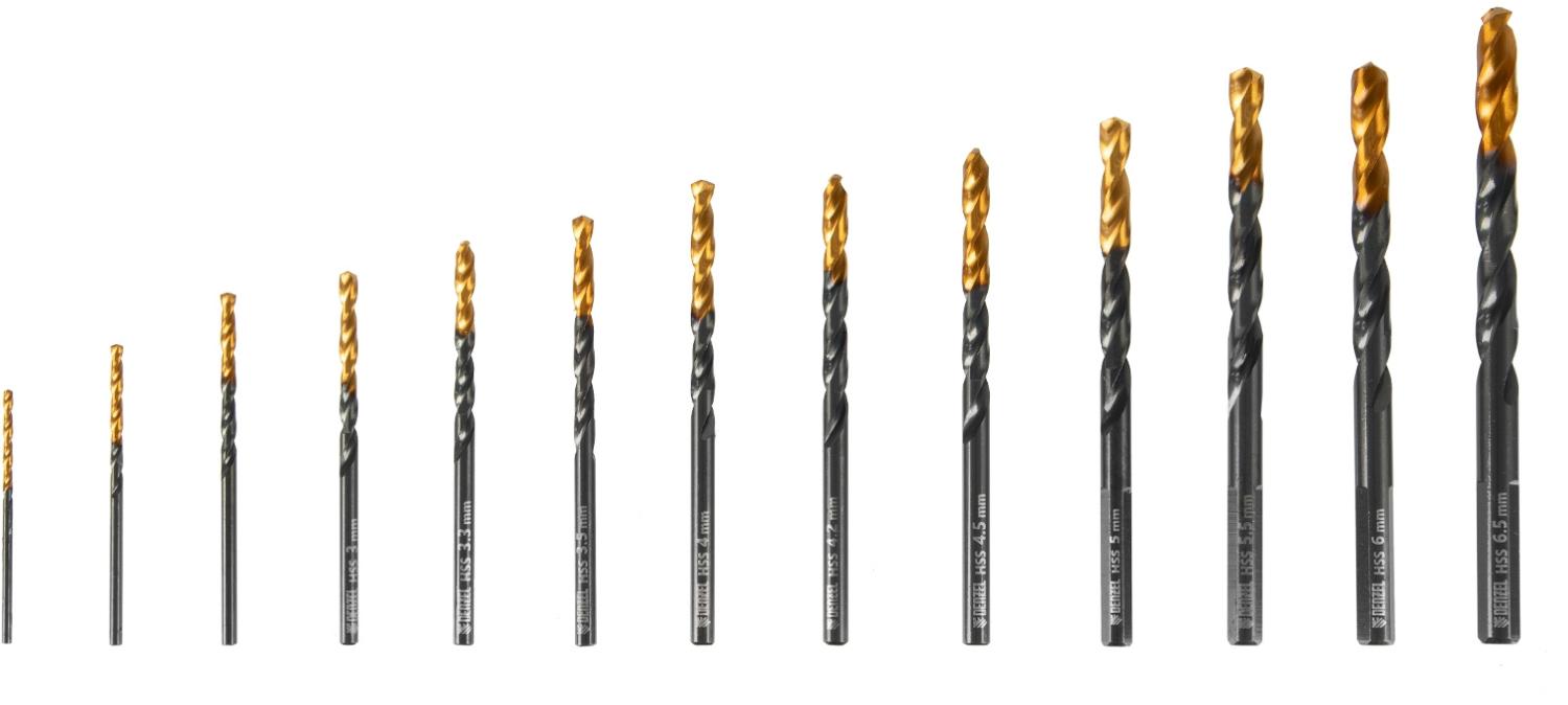 Описание Набор сверл по металлу, 1,5-6,5 мм, HSS-Tin, Golden Tip, 13 шт