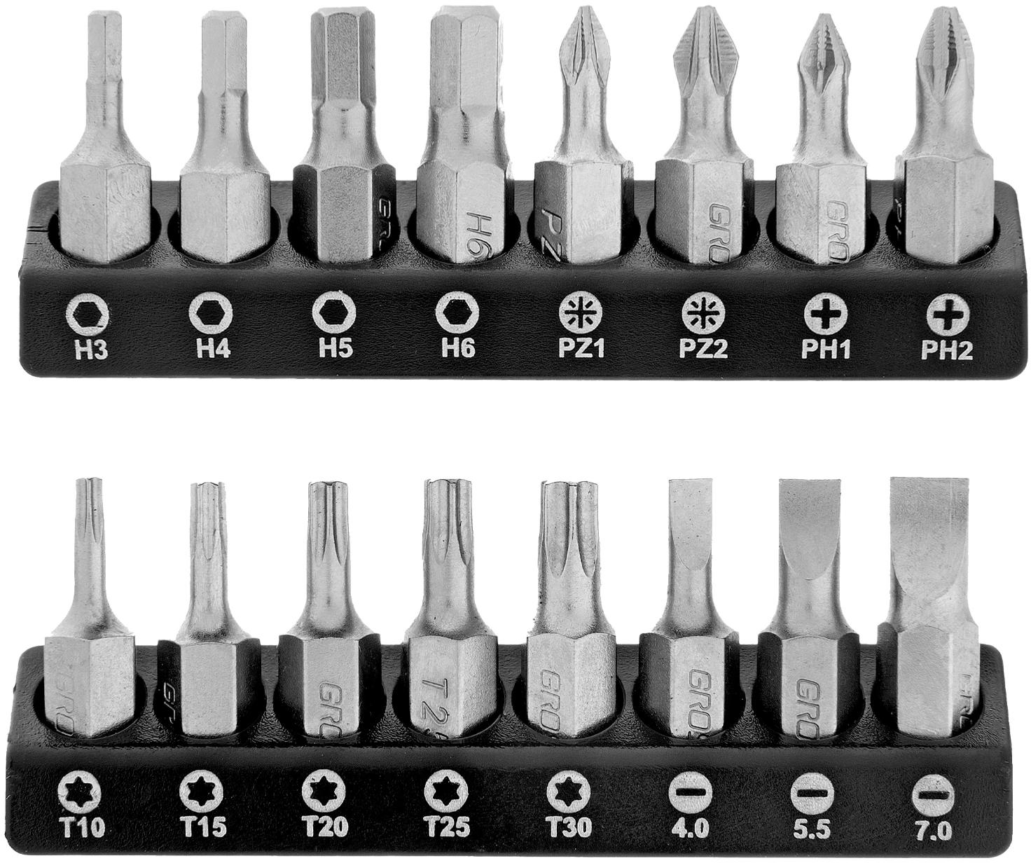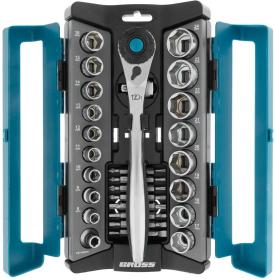 Набор бит и головок Gross 36 предметов (14144) разработаны специально для автолюбителей и центров технического обслуживания. головки и комбинированные ключи изготовлены из хромованадиевой стали, придающей инструменту исключительную твердость в сочетании с легкостью. Биты, биты-вставки и отвертки производятся из стали S2, улучшающей свойства инструмента. Набор комплектуется трещотками с реверсом и быстрым сбросом, трещоточный механизм имеет 120 зуба и обеспечивает исключительную мягкость и плавность в работе. Наборы инструмента Gross пригодятся вам не только в автомобиле. С их помощью можно проводить бытовой ремонт дома и на даче, ремонт бытовых конструкций и садовой техники. Состав набора: ключ трещоточный 1/2. переходник 1/2 1/4. адаптер для бит 5/16 1/2. головки торцевые 1/2: 8, 9,10, 11, 12, 13, 14, 15, 16, 17, 18, 19, 20, 21, 22, 23, 24 мм. Биты 5/16: PH1, PH2, PZ1, PZ2, SL4, SL5. 5, SL7, H3, H4, H5, H6, T10, Т15, Т20, Т25, Т30.Внешний вид и/или характеристики товара могут быть изменены производителем в соответствии с производственным процессом.