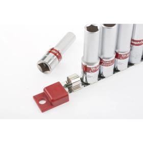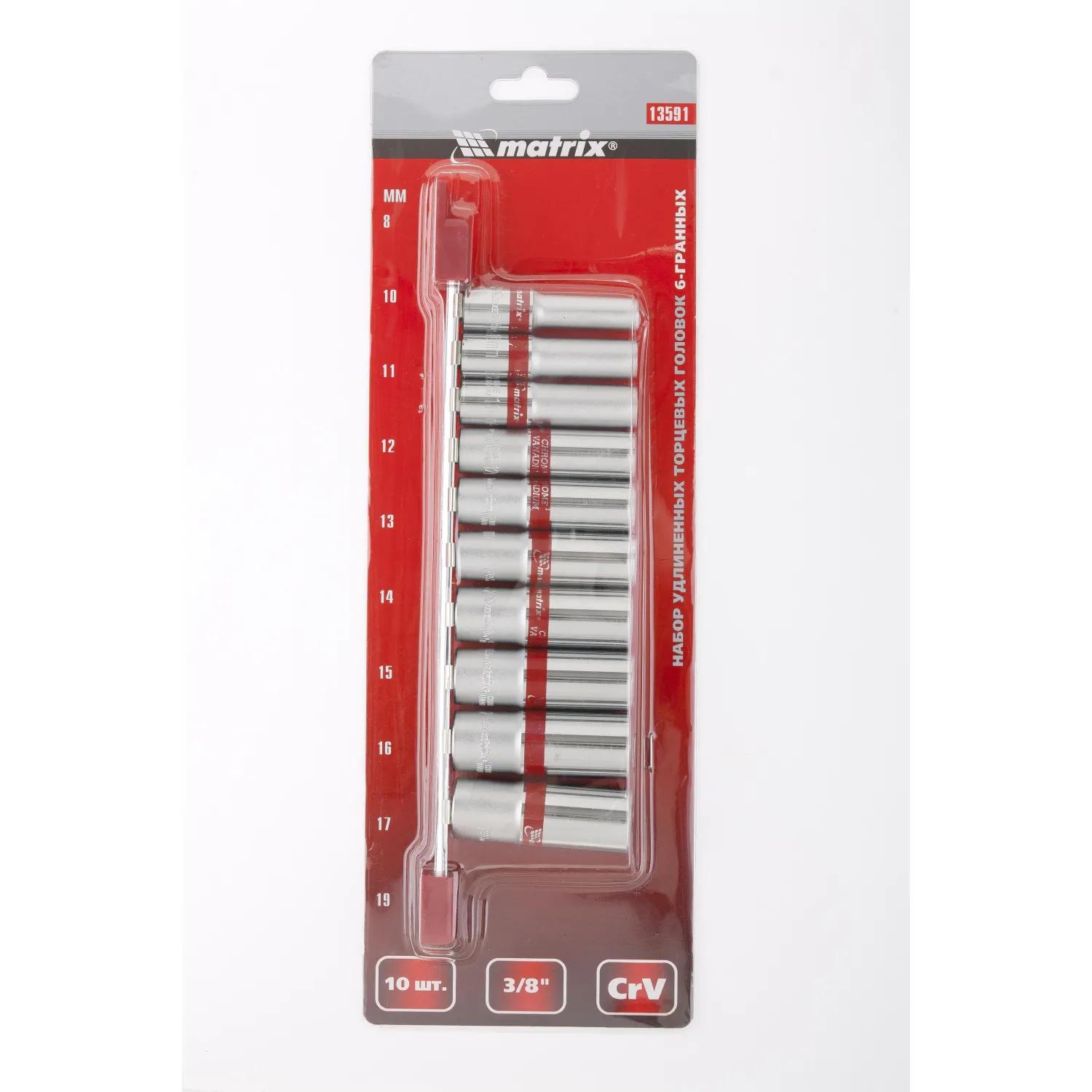 Набор состоит из торцевых головок увеличенной длины наиболее распространенных размеров, которые используются для монтажа/демонтажа крепежных изделий. Выполнены из качественной хром-ванадиевой стали и отполированы, что делает их устойчивыми к коррозии и износу. Твердость материала рабочих частей головок составляет 42 HRC, что соответствует требованиям ГОСТа. Изделия имеют шестигранный рабочий профиль, обладают большим рабочим ресурсом и обеспечивают высокую эффективность завинчивания, поэтому их широко используют на производстве и в автосервисах. Поставляются на металлической планке под квадрат 3/8, упакованы в блистер. Размер: 8, 10, 11, 12, 13, 14, 15, 16, 17, 19 мм.Внешний вид и/или характеристики товара могут быть изменены производителем в соответствии с производственным процессом.
