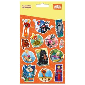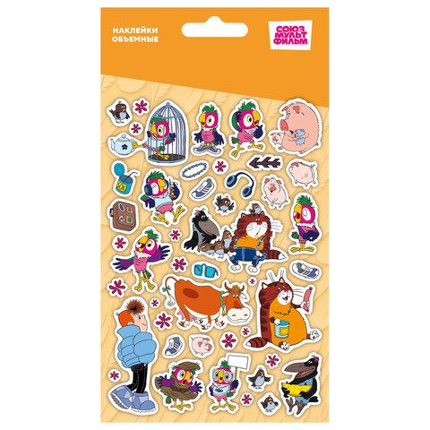 Наклейки объемные многоразовые с героями мультипликационных фильмов киностудии СОЮЗМУЛЬТФИЛЬМ: "Попугай Кеша", "Трое из Простоквашино", "Ну, погоди!", "Маугли", "Котенок Гав", "Как львенок и Черепаха пели песню" и др.На листе более 13 отдельных наклеек, которые сохраняют клеящие свойства даже после многократного использования.
