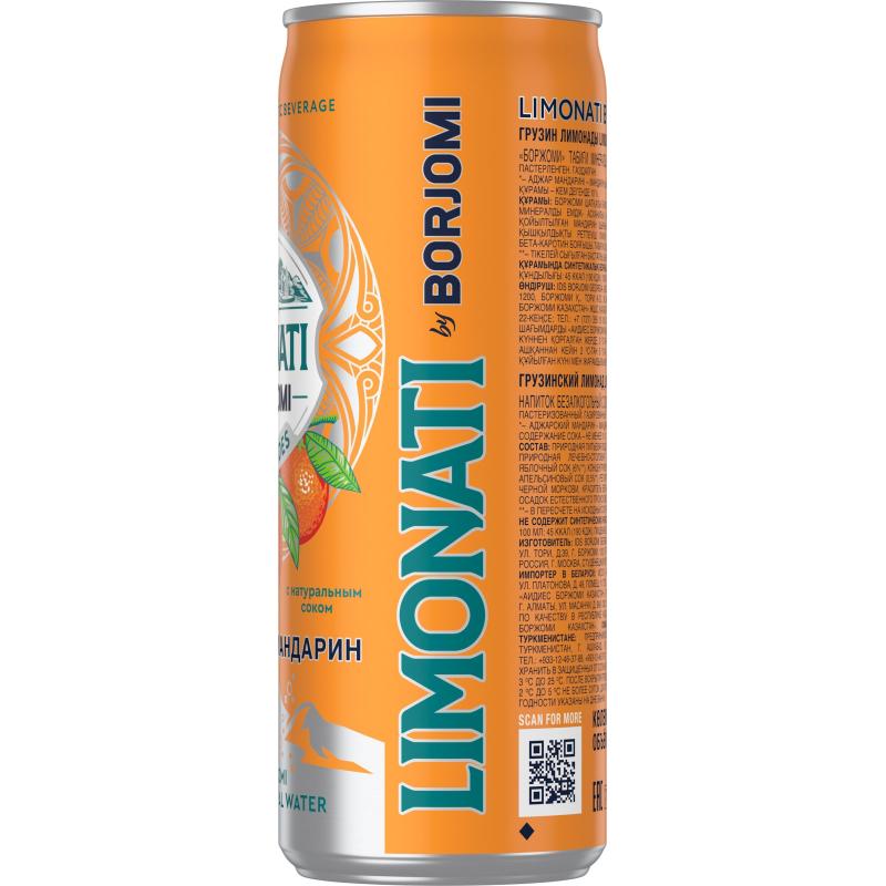 Напиток сильногазированный Боржоми Аджарский мандарин 0.33 л. Газированная минеральная вода Limonati By Borjomi — это инновационная линейка безалкогольных напитков, состоящая из 4 изысканных освежающих вкусов. В составе микс газированной минеральной воды Borjomi и родниковой воды, натуральных фруктовых ароматов и экстрактов трав. Самое главное: ароматизированная вода Borjomi не содержит консервантов, изготовлена из натуральных ингредиентов. Насыщенная фруктовыми ароматами и экстрактами натуральных и трав линейка Limonati By Borjomi в удобном формате банки 0.33 придаст ощущение легкости, воссоединив вас с миром дикой природы и удовольствия!<br> Состав: природная питьевая вода из родников боржомского ущелья, вода минеральная природная лечебно-столовая питьевая «боржоми», сахар, концентрированный яблочный сок (6%), концентрированный мандариновый сок (3.5%), концентрированный апельсиновый сок (0.5%), регулятор кислотности лимонная кислота, концентрат сока черной моркови, краситель бета-каротин, натуральные ароматизаторы. допускается осадок естественного происхождения.<br> Пищевая ценность: 10 г углеводов на 100 г продукта.<br> Энергетическая ценность: 45 ккал на 100 г продукта.<br> Условия хранения: при температуре от 0 С до +35 С, с относительной влажностью воздуха не более 75%, не подвергать воздействию прямого солнечного света, после вскрытия хранить в холодильнике в течение 3 дней.<br> <br> Внешний вид и/или характеристики товара могут быть изменены производителем в соответствии с производственным процессом.