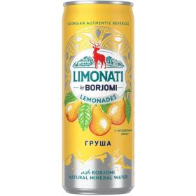 Грузинский лимонад Limonati by Borjomi Груша. Новинка от легендарного бренда со 130-летней историей. Газированный безалкогольный напиток с натуральным соком спелых фруктов на основе минеральной воды Боржоми. Сочетание соков нежной груши и спелого яблока, а также легендарной грузинской воды придают лимонаду сладкий вкус с солеными нотками. Без консервантов и искусственных красителей. Попробуйте настоящие грузинские лимонады от Боржоми и окунитесь в атмосферу солнечной Грузии!<br> Объем: 0.33 литра.<br> Тип упаковки: железная банка.<br> Условия хранения: температура от 0 до 25°С.<br> Страна производитель: Грузия.