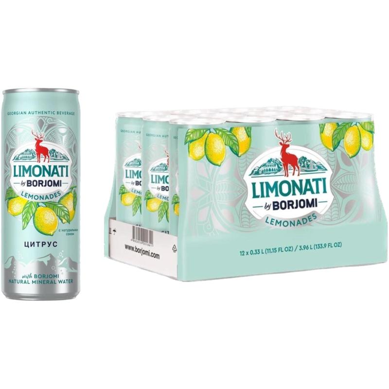 Borjomi Limonati — новый инновационный продукт, производится на основе минеральной воды Боржоми и грузинских натуральных фруктовых соков. Лимонады от Боржоми не содержат консервантов и искусственных красителей. Только натуральные ингредиенты.<br> Новый грузинский лимонад разливается в банки, над дизайном упаковки работало итальянское брендинговое агентство «Пагина». В дизайне объединены Боржомское ущелье, минеральная вода Боржоми и символ марки — олень, а также характерный для грузинской архитектуры орнамент овальной формы.<br> Объем: 0.33 литра.<br> Тип упаковки: железная банка.<br> Условия хранения: температура от 0 до 25°С.<br> Страна производитель: Грузия.