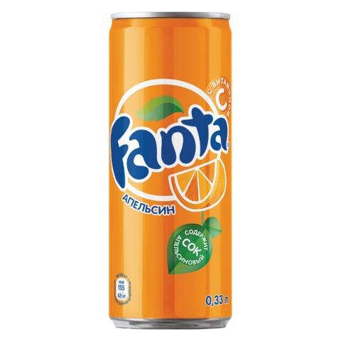 Напиток сильногазированный Fanta 0,33 л.<br> Состав: очищенная вода, сахар, апельсиновый сок 3 %, регуляторы кислотности (лимонная кислота, яблочная кислота, глюконат натрия), витамин С, консервант сорбат калия, натуральные ароматизаторы, подсластитель сахаринат натрия, стабилизаторы (эфиры глицерина и смоляных кислот, гуаровая камедь), красители (каротины, бета-апо-8’-Каротиновый альдегид (С30)). Допускается выпадение осадка натуральных компонентов.<br> Пищевая ценность на 100 г: белки — 0 г, углеводы — 8 г, жиры — 0 г.<br> Энергетическая ценность: 33 ккал/138 кДж.<br> Условия и сроки хранения: хранить при температуре от 0 °С до +25 °С. Не подвергать воздействию прямых солнечных лучей. После вскрытия бутылку хранить при температуре от 0 °С до +6 °С не более суток.<br> <br> Внешний вид и/или характеристики товара могут быть изменены производителем в соответствии с производственным процессом.