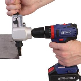 | Описание | Насадка-ножницы по металлу ННМ-20 применяется совместно с сетевым или аккумуляторным шуруповертом (дрелью) для резки металла и пластика различной толщины. Насадка позволяет осуществлять разрез материала в любой плоскости и в любом направлении. |