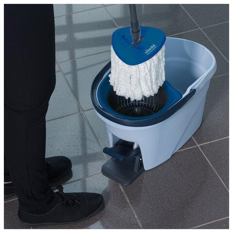 Моп из 100% микроволокна для эффективной уборки загрязнений. Треугольная форма для легкой уборки углов в помещенииРеволюционная компактная система с эргономичным отжимом педалью. Система УльтраСпин Мини очень проста в использовании. Просто поместите швабру в моющий раствор, затем вставьте в отжимной механизм, нажмите педаль, чтобы начать вращение мопа. Эргономичная система не требует наклона к ведру, что дает возможность делать уборку без боли в пояснице.
