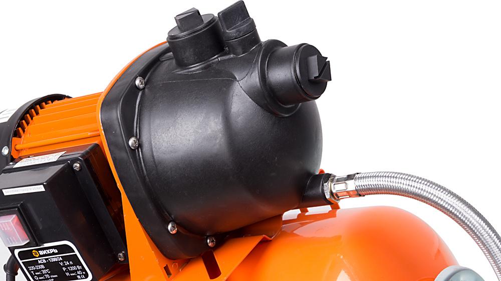 Насосная станция Вихрь АСВ - 1200/24 оснащена асинхронным двигателем мощностью 1200 Вт, рассчитанным на длительный срок службы. Используется для подачи воды в систему водоснабжения дач, коттеджей, ферм. Предусмотрен встроенный датчик давления для автоматического включения насоса при падении давления. Станция отличается вместительным резервуаром на 24 литра, что уменьшает нагрузку на двигатель и сглаживает гидроудары. УстойчивостьСпециальные ножки насосной станции Вихрь АСВ - 1200/24 для устойчивости на любой поверхности. Удобный контрольВ конструкции станции предусмотрен барометр для контроля уровня давления в системе. Длительный срок службыУстройство оснащено производительным асинхронным двигателем, рассчитанным на длительный срок службы. Уменьшенная нагрузка на двигательВместительный гидроаккумулятор сохраняет воду под давлением для уменьшения нагрузки на двигатель (не приходится все время закачивать воду) и сглаживания гидроударов. ПреимуществаВместительный гидроаккумулятор;Алюминиевый переходной фланец;Встроенный датчик давления для автоматического включения насоса;Подъем воды на высоту до 40 м;Ударопрочный металлический корпус;Высокое давление воды на выходе, благодаря встроенному эжектору и системе труб Вентури.
