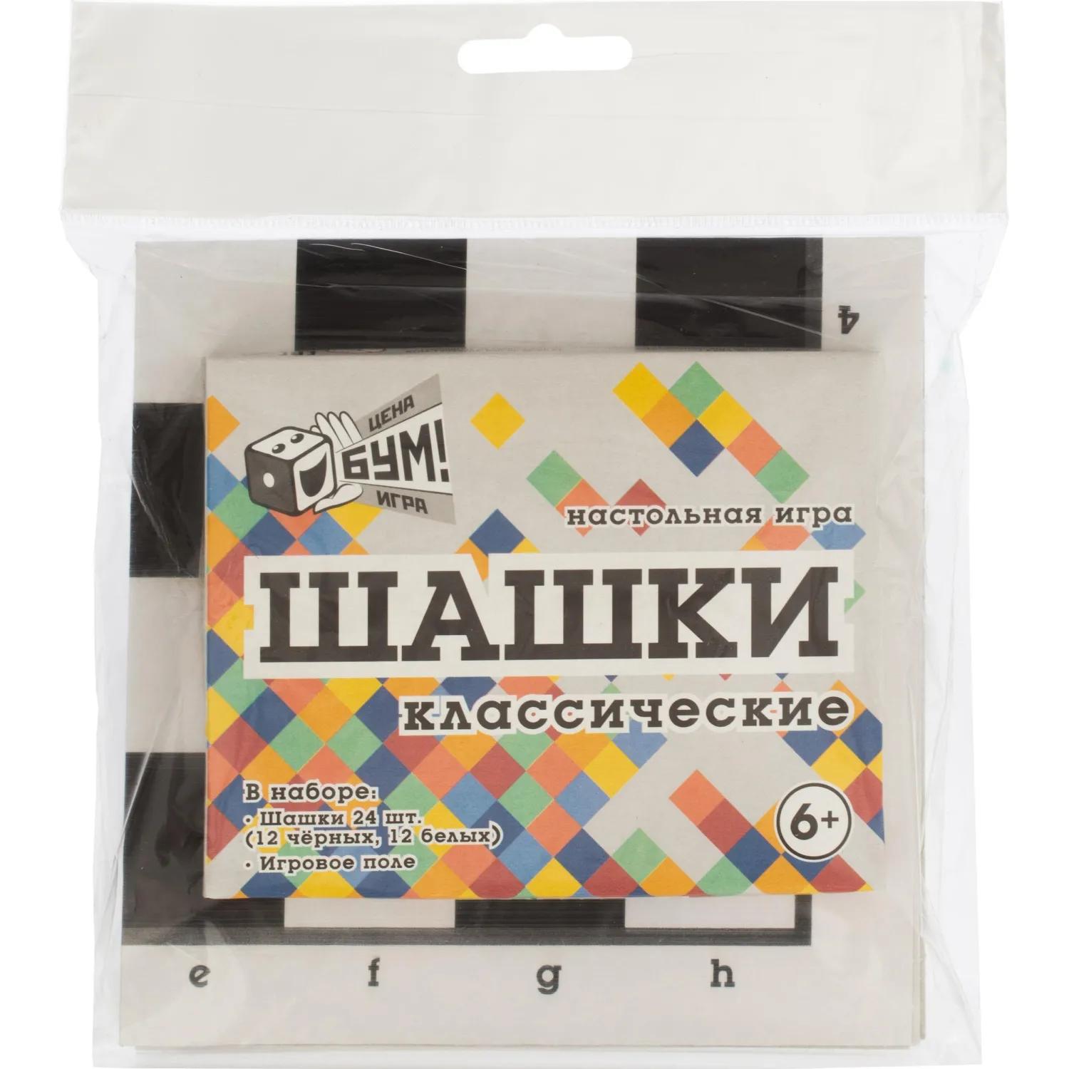 Настольная игра Русский стиль Шашки классические<br><br>Шашки классические — популярная и увлекательная игра, подходящая для людей разных возрастов. Она развивает логическое мышление, стратегическое планирование и внимательность. В процессе игры игроки располагают шашки на поле, продумывая свои ходы и пытаясь победить противника.<br><br>В комплект входят 24 шашки, упакованные в коробочку для удобного хранения, а также одно игровое поле размером 30×30 см. Все элементы набора изготовлены из качественного пластика и плотного картона.<br><br>Игра предназначена для двух игроков. Средняя продолжительность партии — 20-30 минут. Рекомендуемый возраст для игры — от 6 лет. Размер упаковки — 170×30×325 мм.<br><br>Состав набора:<br>— Игровое поле;<br>— 24 шашки.