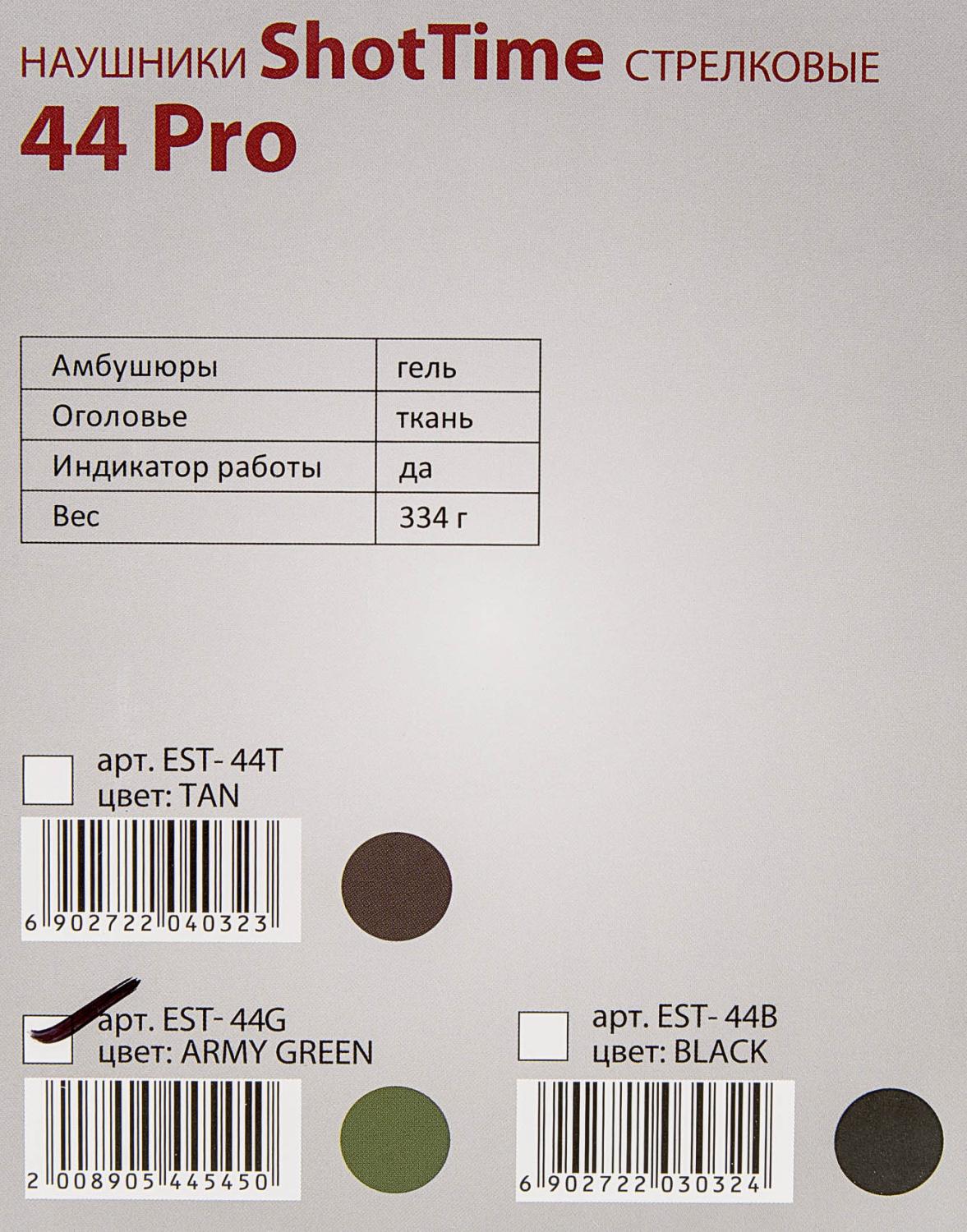 Наушники активные ShotTime 44PRO стрелков.NRR 23dBмяг.оголовье кожа+тканьамбушюры гел.зел.334г / 4dealer.ru