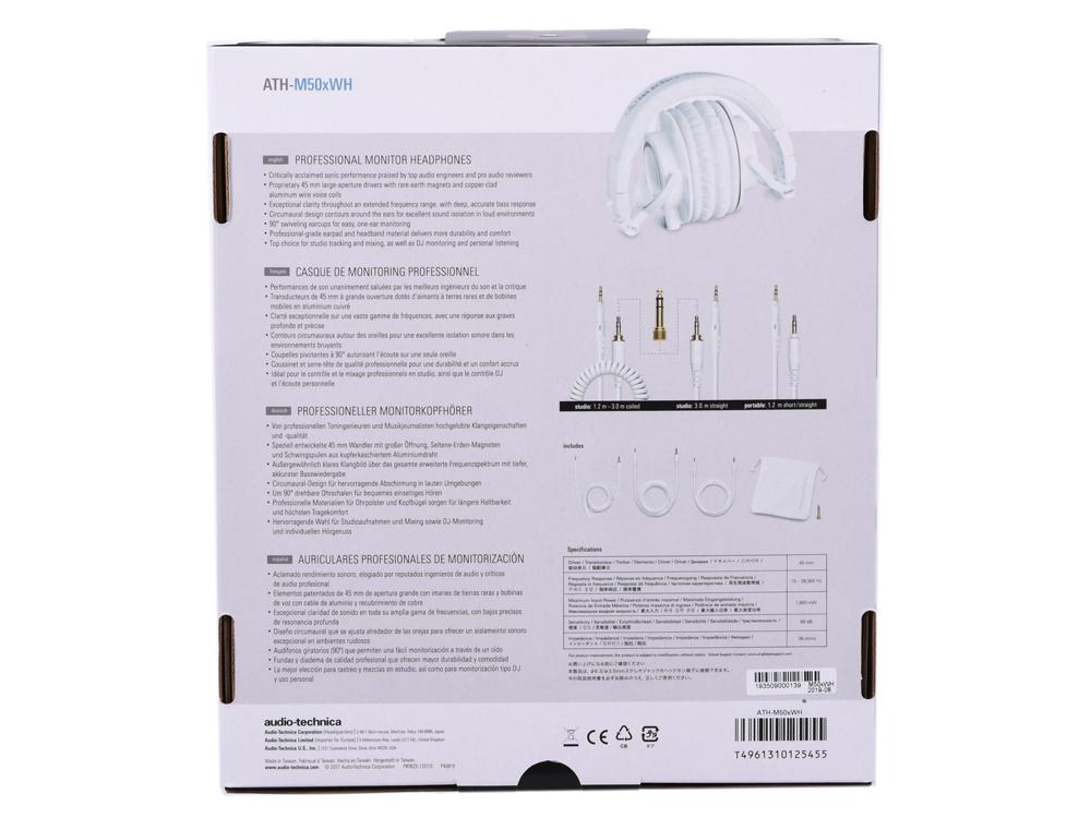 Наушники AUDIO-TECHNICA ATH-M50X 3.5 мм мониторные белый [15117335] / 4dealer.ru