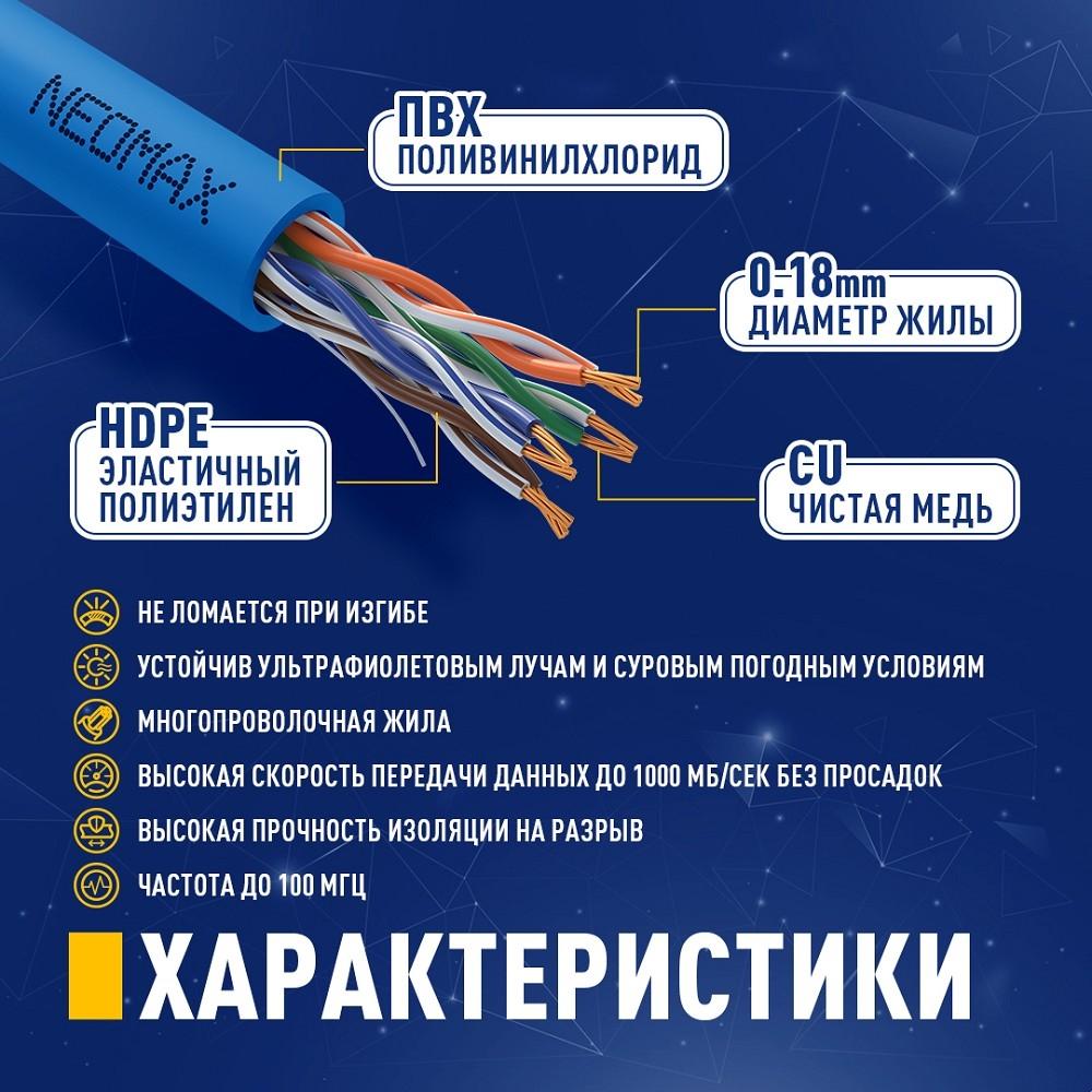 NEOMAX (NM13001-010B) Шнур коммут. UTP 1 м, cat.5е, синий, многожильный / 4dealer.ru