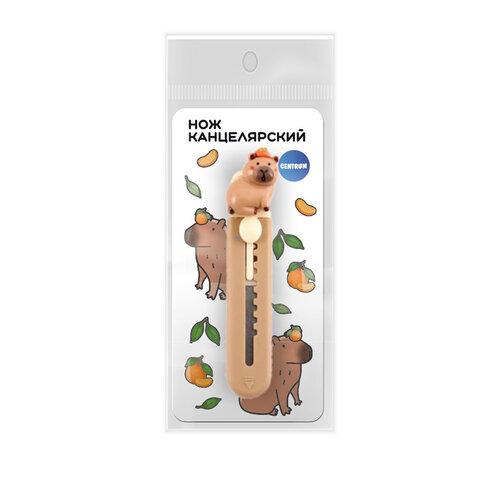 Благодаря компактным размерам канцелярский нож "Капибара" удобно носить с собой. Пластиковый корпус удобно лежит в руке, а пластиковая фигурка не утяжеляет изделие. Система блокировки обеспечивает безопасное и комфортное использование.Выдвижное лезвие изготовлено из нержавеющей стали и дополнено специальными метками, нанесёнными лазерной гравировкой. Они позволяют точно и качественно обламывать сегменты. Ширина лезвия – 9 мм.