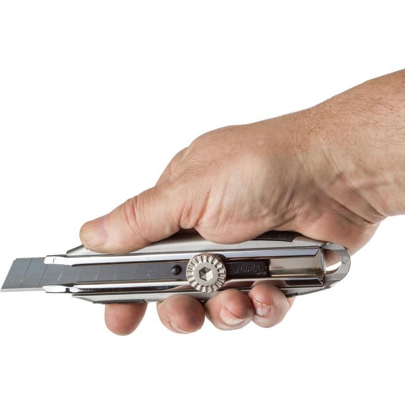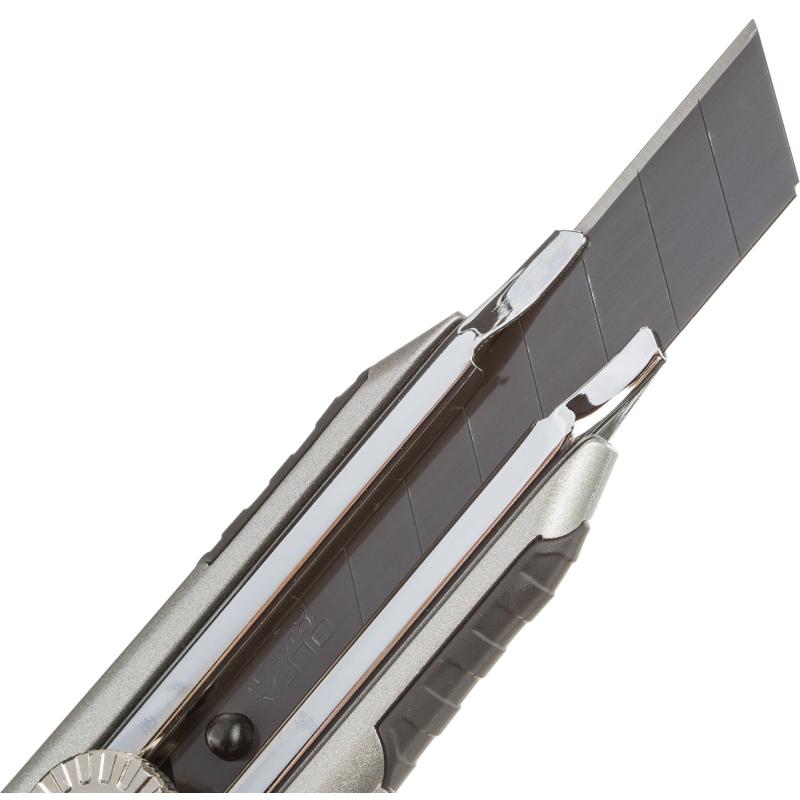 Нож из литого алюминия Olfa OL-MXP-L для точного и уверенного реза. Корпус из нержавеющей стали надежно фиксирует лезвие, обеспечивая исключительную долговечность даже при непрерывном использовании.Ультра-острое черное сегментированное лезвие LBB шириной 18 мм на 25% острее стандартных лезвий Olfa, что делает этот универсальный нож выбором профессионалов. Цельнометаллический винтовой фиксатор Wheel Lock с сатинированным покрытием надежен и визуально гармоничен с корпусом. Рукоятка с противоскользящей резиновой накладкой достаточно компактна и максимально удобна в использовании.— При работе с лезвиями используйте средства защиты— Не утилизируйте лезвия с бытовыми отходами — Хранить в недоступном для детей месте