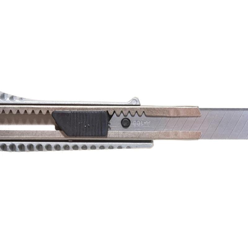Нож строительный безопасный с фиксатором Вихрь 18 мм (73/10/10/1) предназначен для резки различных материалов в бытовых, хозяйственных или строительных целях, оснащен металлической направляющей лезвия, что повышает прочность ножа при давлении на него во время резки.Особенности изделия:- Корпус выполнен из металла;- Сменное сегментированное лезвие из стали;- Удобная система блокировки лезвия - защелка (Push-Lock).Характеристики изделия:- Длина ножа: 200 мм;- Ширина лезвия: 18 мм;- Толщина лезвия: 0.35 мм;Схема замены лезвия:1. Снять с корпуса торцевую заглушку.2. Извлечь из корпуса каретку.3. Снять со шпинделя отработанное лезвие, установить новое.4. Вставить каретку в направляющую и вернуть на место торцевую заглушку.Меры предосторожности:- При работе с лезвиями используйте средства защиты.- Не утилизируйте лезвия с бытовыми отходами.- Хранить в недоступном для детей месте.Внешний вид и/или характеристики товара могут быть изменены производителем в соответствии с производственным процессом.