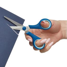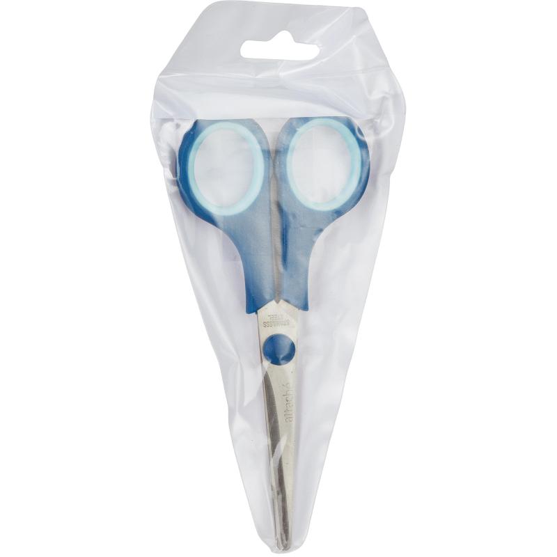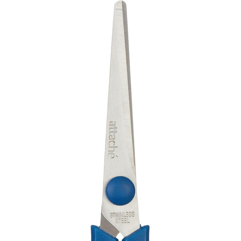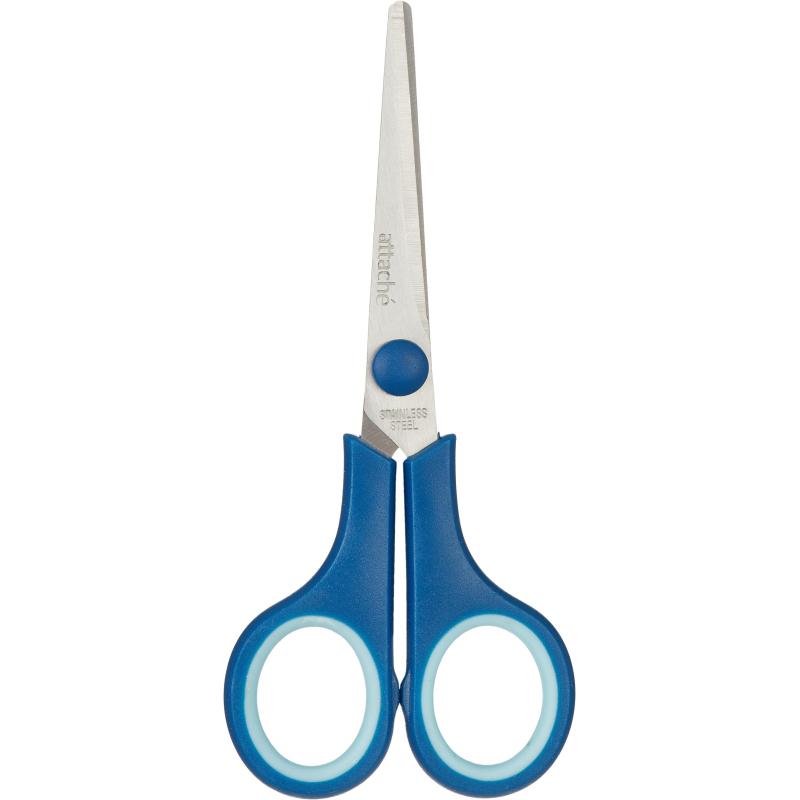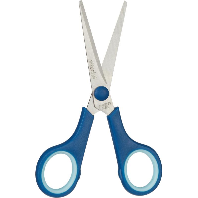 Ножницы 140 мм Attache (Attache Economy) с пластиковыми прорезиненными ручками синего цвета<br><br>Канцелярские ножницы Attache (Attache Economy) имеют остроконечные лезвия выполенные из нержавеющей стали. Симметричные ручки круглой формы из пластика синего цвета и имеют прорезинненую вставку голубого цвета для удобства захвата и использования. Двусторонняя заточка лезвий. Длина ножниц — 140 мм.<br>В рамках ребрендинга производится перевод данного артикула с ТМ Attache Economy на ТМ Attache с сохранением всех потребительских характеристик товара. На переходный период допускается поставка данной продукции в двух вариантах дизайна.