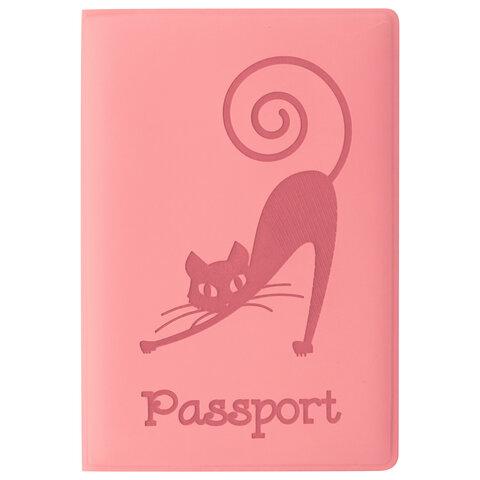 Обложка для паспорта, мягкий полиуретан, "Кошка", персиковая, STAFF, 237615