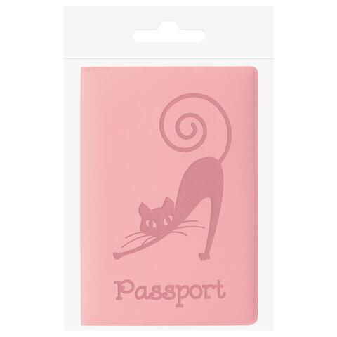 Обложка для паспорта, мягкий полиуретан, "Кошка", персиковая, STAFF, 237615 / 4dealer.ru
