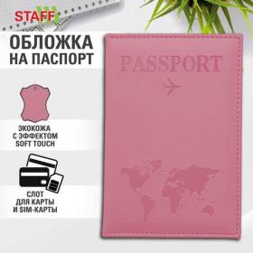 Обложка для паспорта STAFF надежно защитит документ от изнашивания и загрязнения, а также придаст изделию изысканный и неповторимый вид.Модель выполнена из экокожи розового цвета с эффектом soft-touch и украшена тиснением в виде надписи "Passport" – на обложку нанесено изображение самолета и карты мира. Имеет простроченные края и мягкую изолоновую вставку. На внутреннем развороте расположены два кармана из прозрачного пластика. Благодаря компактным размерам 98х141 мм документ в обложке удобно носить с собой.