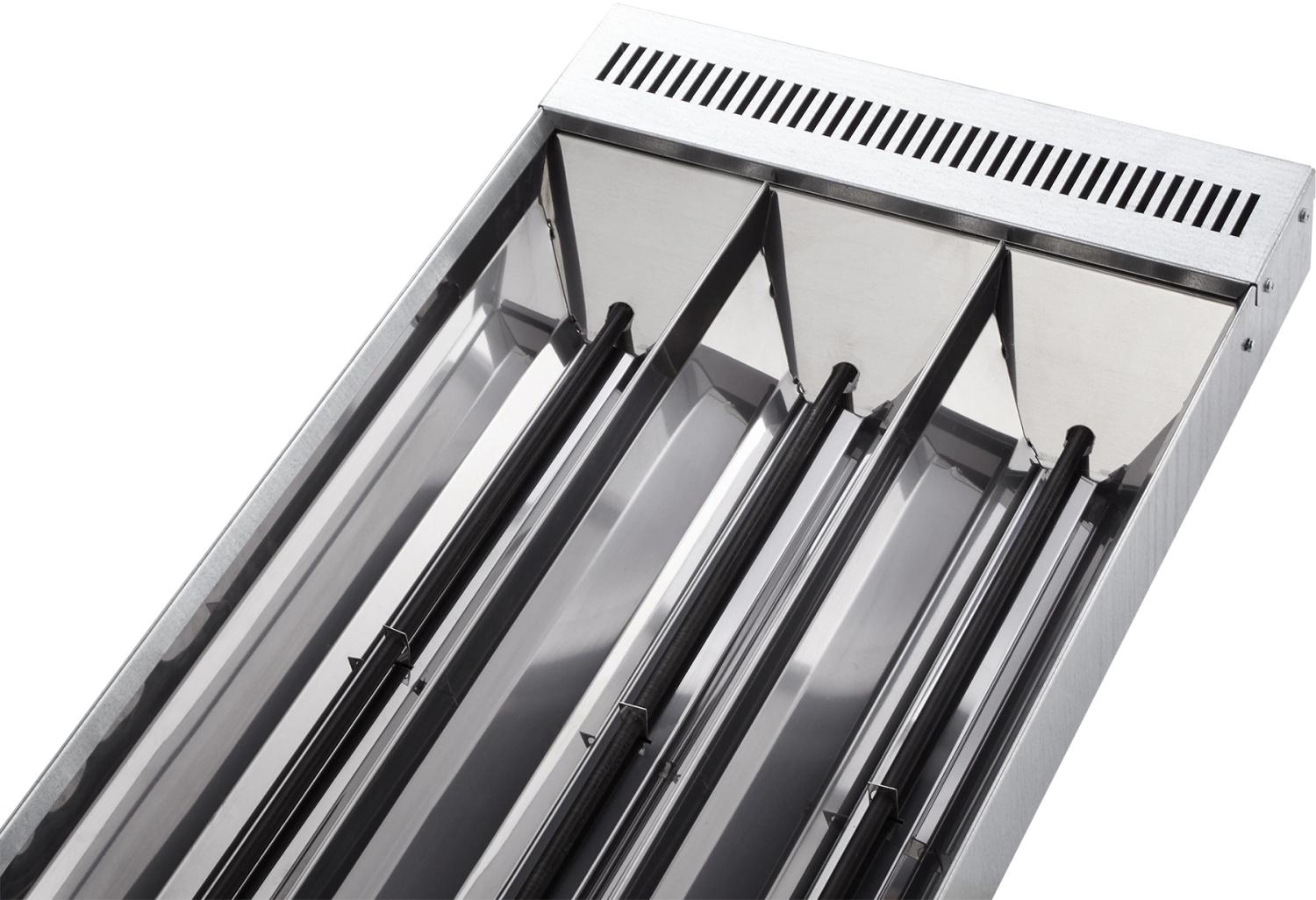 | Особенности | Инфракрасный обогреватель BIH-T2-4.5 – это сфокусированный интенсивный обогрев, IP54, ТЭНы с оболочкой из спецсплава Incoloy для долговременной эксплуатации в тяжёлых условиях (мороз, ветер). Поворотные кронштейны для потолка или стены, герметичный коммутационный блок. Высота установки – 4–15 м. |