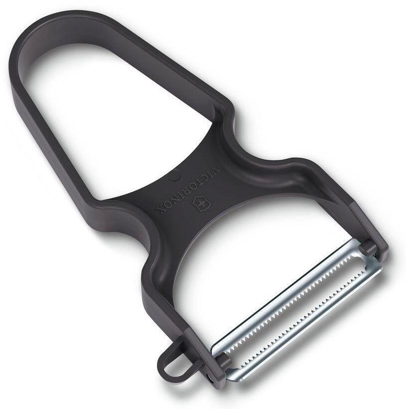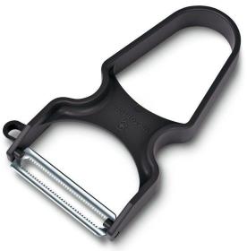 | Описание | Овощечистка с поворотным лезвием из нержавеющей стали с микросеррейторной кромкой, рукоять из АБС-пластика чёрного цвета |