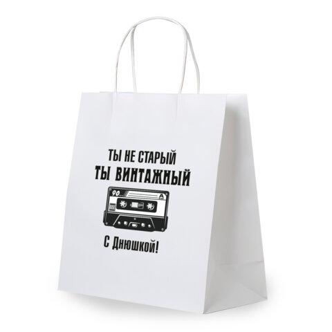 Подарочный пакет - отличное решение для упаковки любого презента, которое позволит с легкостью и со вкусом оформить выбранный подарок. Подарочный пакет – это не просто упаковка, это ваш вклад в создание незабываемых воспоминаний!Подарочный пакет из крафтовой бумаги – идеальное решение для вашего праздника! Благодаря плотности 150 г/м?, пакет надежно удерживает свою форму и защищает содержимое, сохраняя ваш подарок в идеальном состоянии.