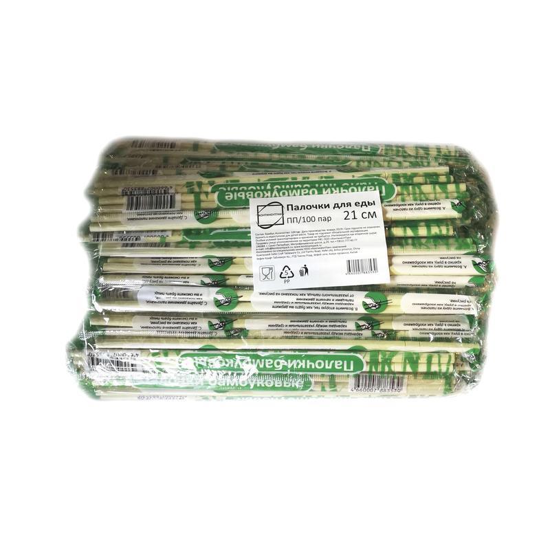 Палочки для суши КонтинентПак бамбуковые 21 см (100 пар). Закругленные палочки для еды из натурального бамбука бежевого цвета. Без трещин и заусенцев - высокого качества. Расфасованы в индивидуальные прозрачные упаковки по парам. Стерильны, проходят антимикробную обработку. Не соединены между собой, поэтому не требуется отламывать друг от друга, что исключает попадание заноз в еду, а также в кожу рук. Применяются в качестве столовых приборов при употреблении в пищу роллов, суши и прочих блюд японской, корейской, китайской и прочих азиатских кухонь. Также известны как "Китайские палочки" и "Японские палочки". Палочки для суши одноразовые, длиной 21 см.