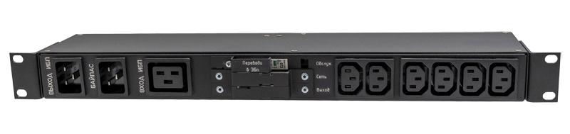 | Назначение | Панель распределения с переключателем обходного режима ЩР-Б-16А предназначена для перевода электропитания нагрузки с ИБП на вспомогательную электросеть однофазного переменного тока напряжением 220/230/240 В 50 Гц. Переключатель позволяет вручную перевести нагрузку на работу от электросети в обход ИБП. Доступно исполнение с автоматическими выключателями вместо переключателя. Имеет шесть выходных розеток IEC320 С13, защищенных автоматическими выключателями. |