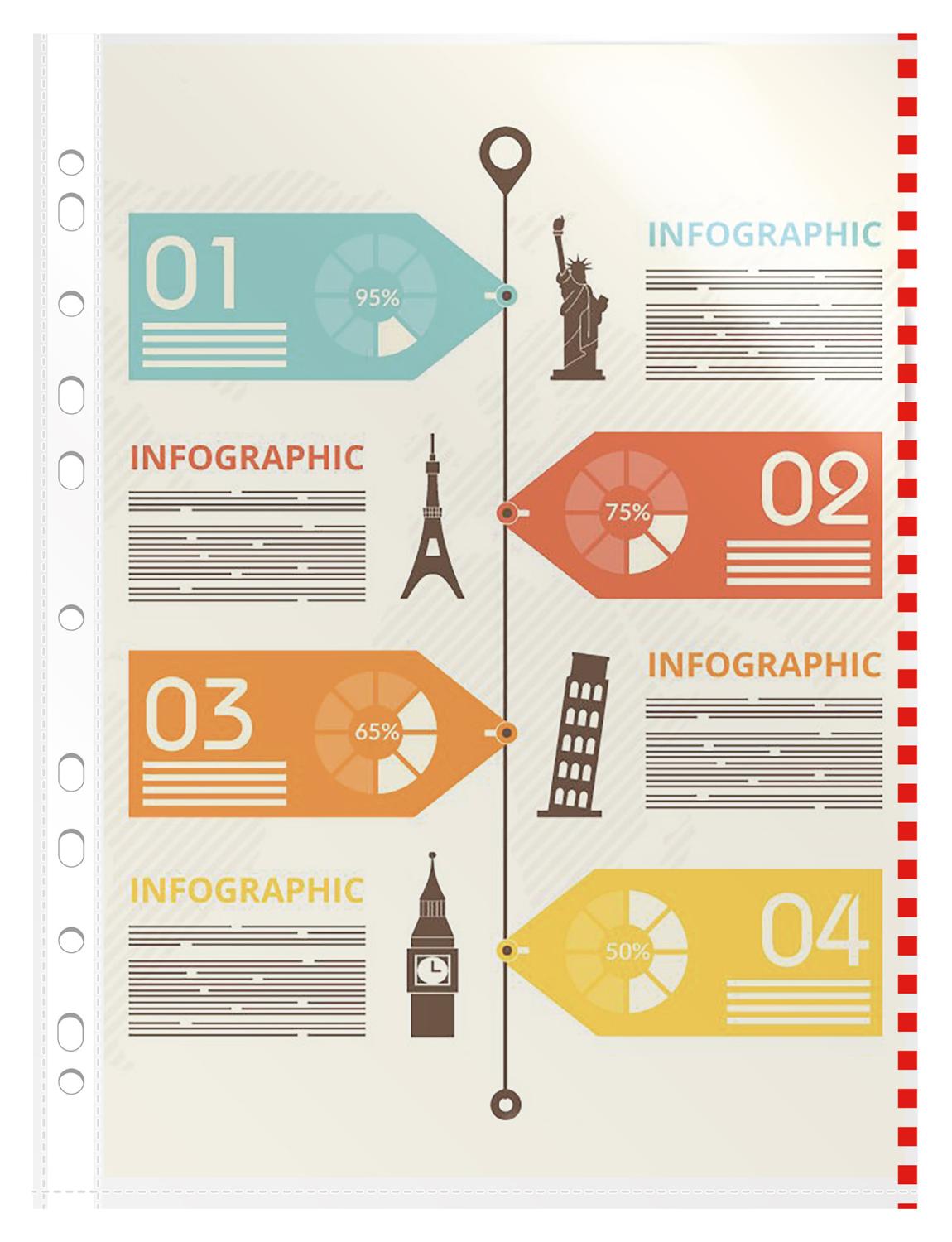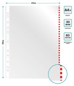 Папка-вкладыш Бюрократ Премиум -013BKAN2RED глянцевые A4+ 30мкм красный край (упак.:50шт) / 4dealer.ru