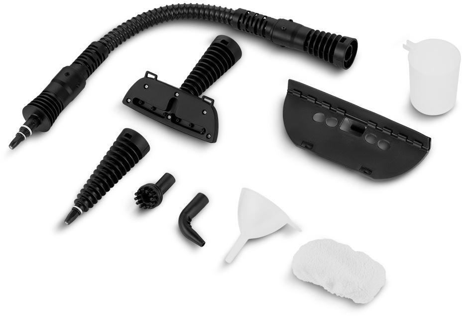 | Насадки в комплекте | Струйная насадка, насадка для отпаривания, тряпка для отпаривания, насадка с резиновым скребком, нейлоновая щетка, угловая насадка |