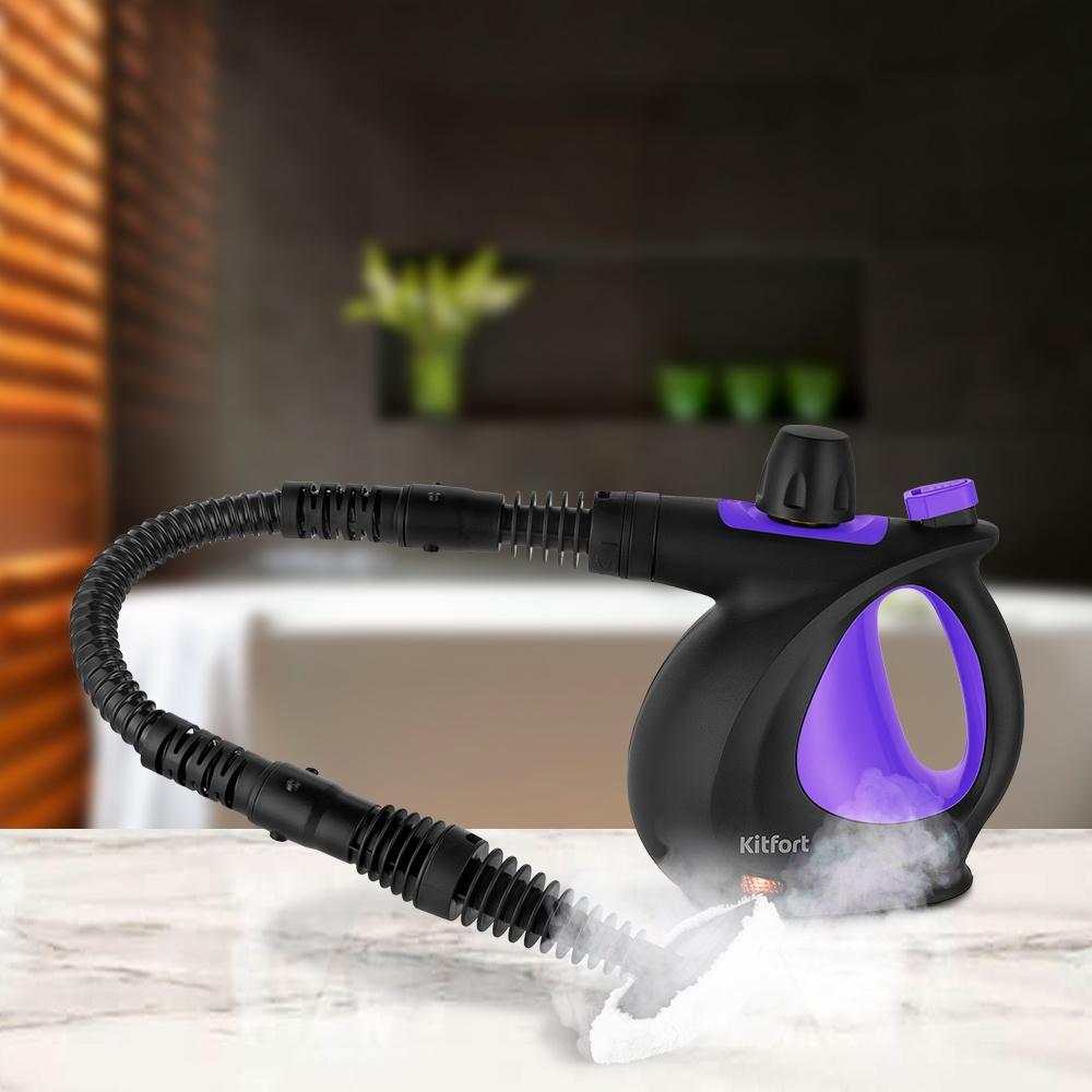 Пароочиститель ручной Kitfort КТ-9195 1050Вт черный/фиолетовый / 4dealer.ru