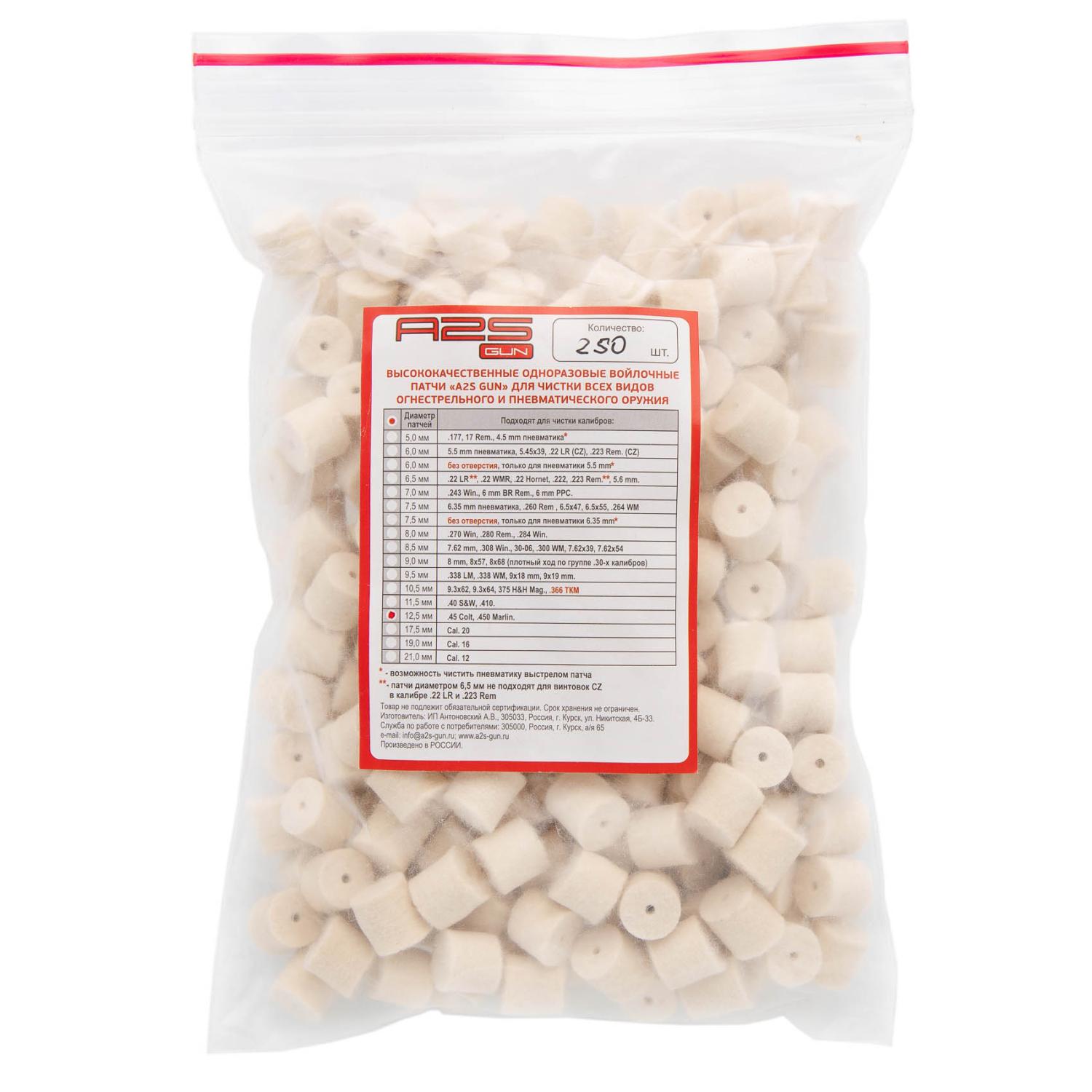 Патчи войлочные A2S GUN Ø 125мм (45Colt;450Marlin) (250шт) / 4dealer.ru