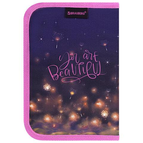 Тканевый пенал BRAUBERG стандартного размера с одним отделением и двумя откидными планками. Удобная молния с трех сторон с металлическим бегунком, прочные резинки для предметов. Вмещает до 35 предметов.Материал снаружи и внутри – полиэстер с цветной печатью и ярким дизайном. Основа пенала – плотный картон. Такая конструкция отличается износостойкостью и прочностью, она поможет защитить канцелярские принадлежности от повреждений.