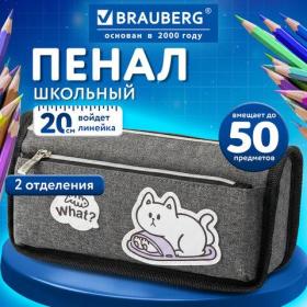 молнию с металлическим бегунком. Вмещает до 50 предметов.Пенал мягкий BRAUBERG выполнен из прочного полиэстера с 3D-элементами из экокожи. Размер пенала 21х6х9 см. Имеет два вместительных отделения. Застегивается на молнию с брендированными металлическим бегунками.