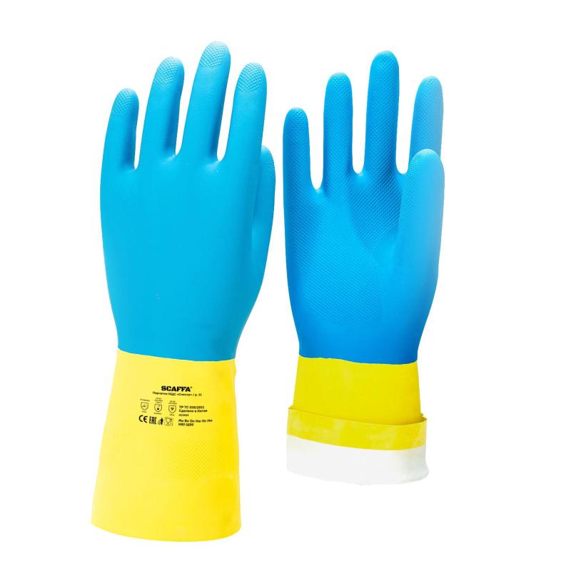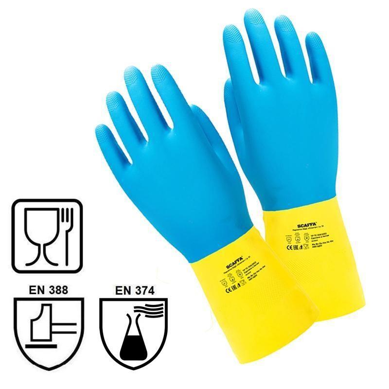 Перчатки от химических воздействий SCAFFA Спектр КЩС (растворов кислот концентрацией 80%, растворов щелочей концентрацией 50%) с хлопчатобумажным напылением, текстурированной рабочей поверхностью. Безопасны для контакта с пищевыми продуктамиПерчатки для защиты от химических факторов (растворов кислот концентрацией 80%, растворов щелочей и гигиеническим требованиям концентрацией 50%, сырой нефти, нефтяных масел и продуктов тяжелых фракций).