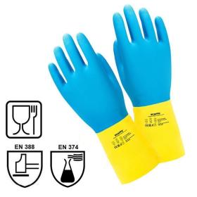- Двухслойные герметичные латексно-неопреновые перчатки с надежной защитой от широкого спектра химических веществ, обладают высокой стойкостью к моющим средствам.