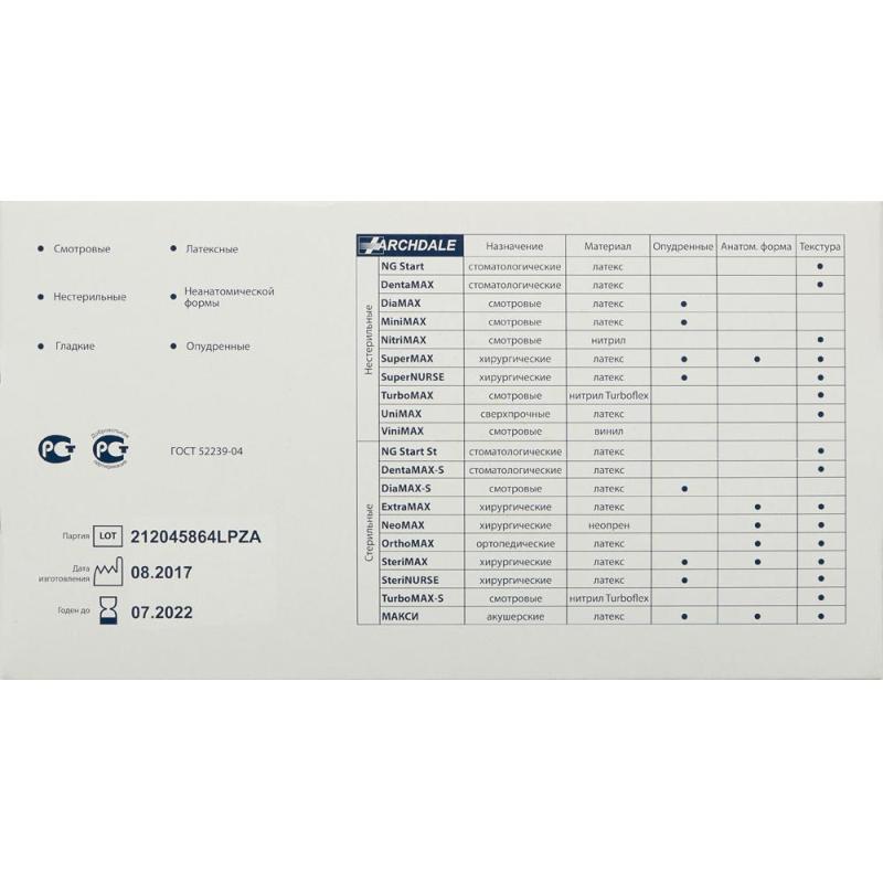 СМОТРОВЫЕ НЕСТЕРИЛЬНЫЕ ОПУДРЕННЫЕ ПЕРЧАТКИ ОБЛАСТЬ ПРИМЕНЕНИЯ Обследование пациентов и диагностические манипуляции ОБЩИЕ ХАРАКТЕРИСТИКИ: Гладкая рабочая поверхность. Имеют плоскую форму. Опудрены модифицированным кукурузным крахмалом. Манжета заканчивается валиком. Соответствуют ГОСТу Р 52239-2004. ТЕХНИЧЕСКИЕ ХАРАКТЕРИСТИКИ размеры: S (6-7), M (7-8), L (8-9) длина перчатки: 250 мм (+/- 0,5) толщина: Изделие сделано из латекса натурального каучука, который может вызвать аллергическую реакцию.