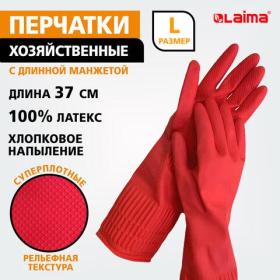 Универсальные супер плотные латексные перчатки LAIMA защищают руки от воздействия грязи, влаги, моющих и чистящих средств при любых бытовых и хозяйственных работах: мытьё посуды, стирка белья, уборка, садоводческая работа и т.д.Супер плотные перчатки с высокой износостойкостью для долговременного использования. Изготовлены из прочного латексного материала, который защищает руки от внешних воздействий при проведении любых хозяйственно-бытовых работ. Текстура на ладони и пальцах помогает улучшить сцепление и препятствует выскальзыванию предметов из рук. Длинная манжета обеспечивает защиту при погружении рук в глубокую емкость с жидкостью. Внутреннее хлопковое напыление позволяет надевать перчатки даже на влажные руки, а также обеспечивает комфорт во время использования.