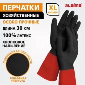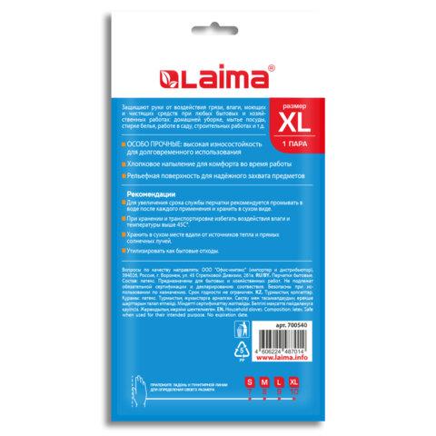 Универсальные особо прочные латексные перчатки LAIMA защищают руки от воздействия грязи, влаги, моющих и чистящих средств при любых бытовых и хозяйственных работах: мытьё посуды, стирка белья, уборка, садоводческая работа и т.д.Особо прочные перчатки с высокой износостойкостью для долговременного использования. Изготовлены из прочного латексного материала, который защищает руки от внешних воздействий при проведении любых хозяйственно-бытовых работ. Текстура на ладони и пальцах помогает улучшить сцепление и препятствует выскальзыванию предметов из рук. Внутреннее хлопковое напыление позволяет надевать перчатки даже на влажные руки, а также обеспечивает комфорт во время использования.